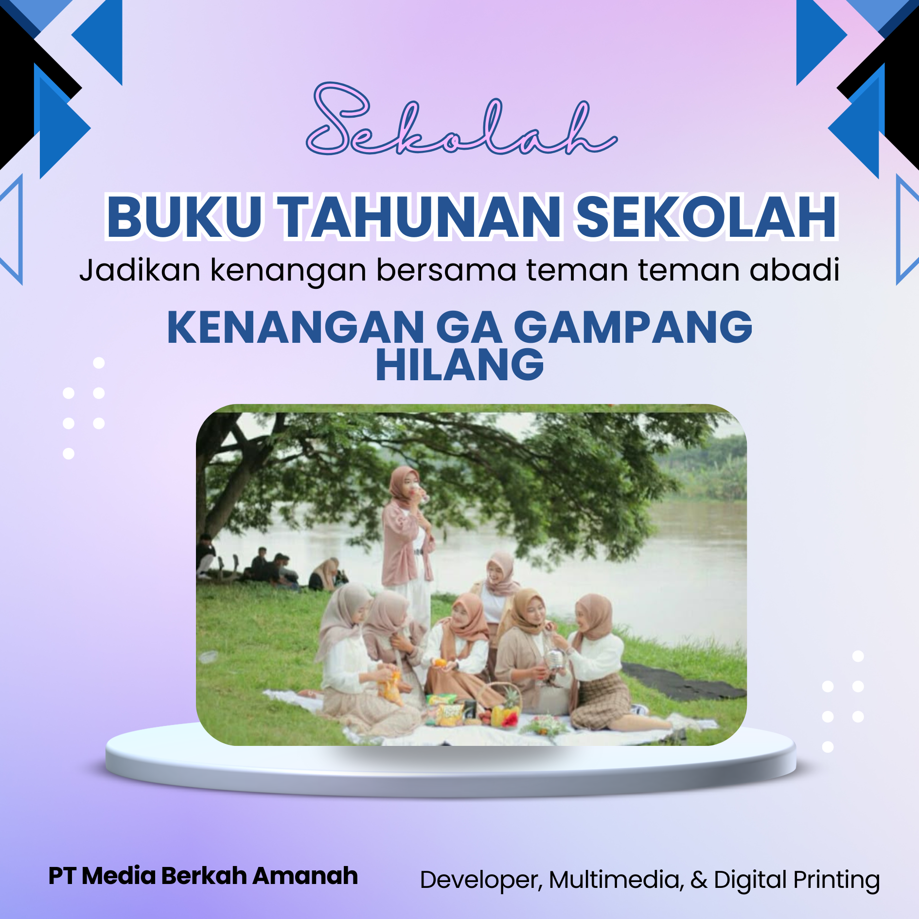 Kami adalah mitra Anda dalam merancang dan memproduksi Buku Tahunan Premium. Kami percaya buku ini adalah artefak berharga yang merangkum tawa, pencapaian, dan kebersamaan di sekolah. Dengan fokus pada kualitas cetak terbaik dan desain yang relevan dan kreatif, kami memastikan setiap halaman menceritakan kisah yang kuat. Pilih kami untuk mendapatkan warisan visual yang akan terus dibanggakan dan dikenang oleh setiap angkatan.