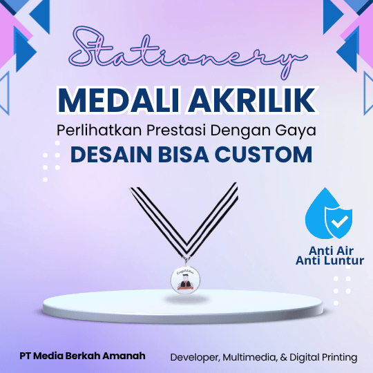 Medali akrilik adalah medali yang dibuat dari bahan akrilik (plastik bening/tembus pandang seperti kaca, tetapi lebih ringan dan tidak mudah pecah). Di gunakan sebagai Penghargaan, Promosi / Branding,Kenang – Kenangan.